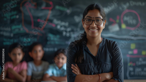 portrait of a indian female teacher, portrait of female teacher, student in classroom VIII