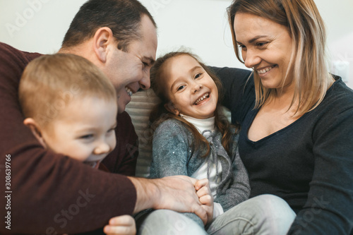 family, children, house, male, human relationships, leisure, smiling, joy, cheerful, home, happy, laughing, woman, person, casual attire, female, husband, childhood, 2, people, fun, entertainment, looking, wife, room, woman, white, father, young, relax, parenthood, indoor, sofa, together, children, man, couch, playing, relaxing, girl, mother, lifestyle, living, daughter, interior, love, son, enjoying, portrait, mother