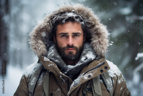 portrait of a man in winter created with Generative AI technology