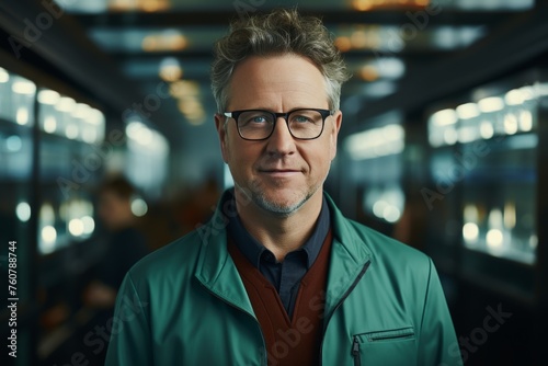 man, portrait, smile, goggles, green jacket, office, business, professional, men at work, employee, staff, member, team, leader, manager, executive, boss, company, corporation, stronger, organisation, institution, building, structure, interior, design, architecture, commercial, industrial, urban, city, town, metropolis