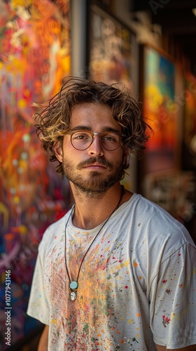 Portrait of a Man with Paint Splatters on His Shirt