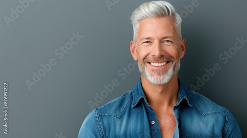 man, portrait, mid-age, head shot, happy, mature, grey background, studio, confident, joyous, indoor, person, senior, professional, smile, face, closeup, middle-aged, shoulder, expression, teeth, casual attire, grin, pose, adult, neutral, plain, attire, middle, age, attractive, cheerful, eye, hand, sharpened