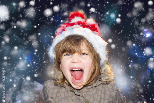 christmas, children, santa, hat, winter, holiday, christmas, girl, happiness, celebration, claus, childhood, fun, cap, beauty, smile, smiling, joy, person, face, eye, blue, snow