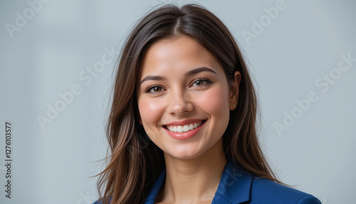 Portrait of a professional and confident businesswoman in a blue suit, smiling and isolated on a clean background