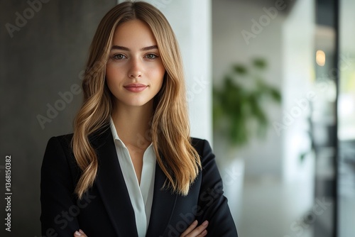 Portrait of a professional woman in a suit. Business woman standing in an office