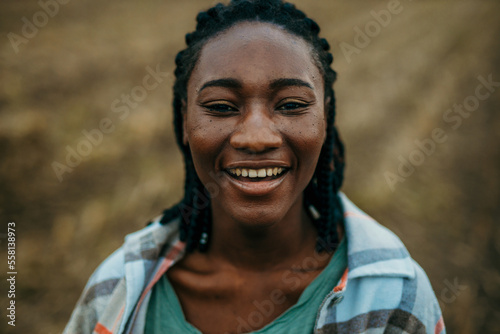 adult, african, agriculture, american, attractive, black, black woman, casual attire, cheerful, confident, countryside, cute, expression, face, farm, farmer, fun, happiness, happy, laughing, lifestyle, natural, nature, outdoors, person, portrait, positive, rural, smile, travel, vacation, village, woman