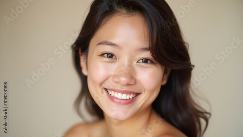 woman, portrait, face, smile, happy, beautiful, asian, girl, female, model, skin, teeth, healthy, young, adult, beauty, joy, expression, positive, confident, attractive, natural, fresh, make-up, fashion, lifestyle, portraiture, studio, candid, emotion, cheerful, optimistic, inner peace, well-being, vibrant, radiant, glowing, care, cosmetic, wellness, serene, contentment