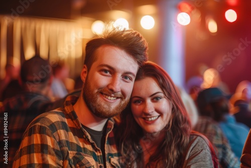 Portrait of a smiling caucasian couple in their 20s attending a cultural event