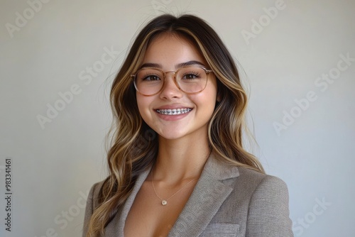 Portrait of a smiling woman wearing glasses and braces