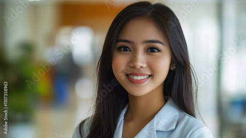 Portrait of a Smiling Young Filipino Woman in a Bright Indoor Setting