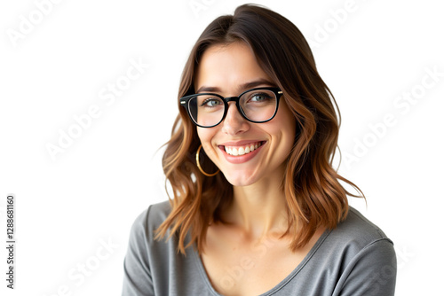 Portrait of a smiling young woman with glasses, isolated on white background. Cheerful and approachable for corporate, education, beauty, and lifestyle projects. Isolated on transparent background.