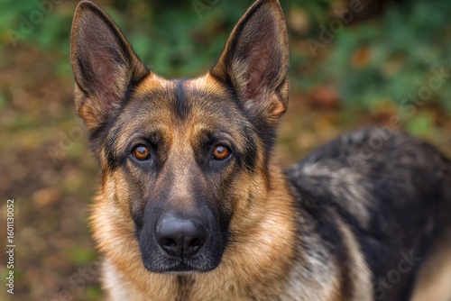 Portrait of a strong german shepherd in nature, embodying loyalty and resilience for dog lovers and pet enthusiasts seeking captivating canine imagery