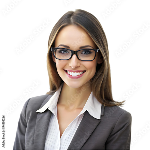 businesswoman, portrait, goggles, professional, office, corporate, success, career, elegant, smile, happy, beautiful, attractive, leader, manager, female, fashion, image, background, black, grey, suit, hair, eye, look, confident, model, executive, employee, style, photo, studio, white, shirt, teeth, expression, people