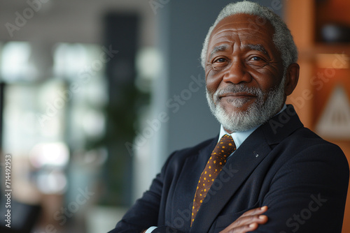senior, african american, businessman, professional, corporate, office, mature, experienced, leadership, confident, elegant, warm colors, executive, portrait, diversity, inclusion, business attire, grey hair, smiling, success, role model