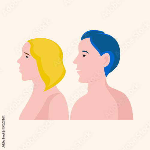 portrait of a Ukrainian man and woman in yellow - blue colors. Illustration. characterizing the social crisis of Ukrainians. Young modern people. Flat vector.
