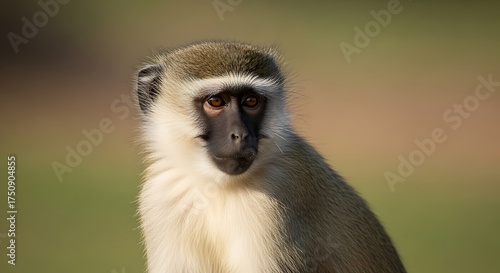 Portrait of a Vervet Monkey in Natural Habitat, Close-Up View.