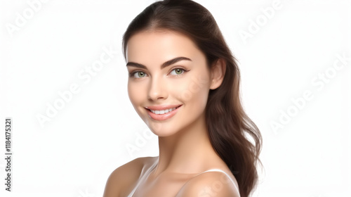 woman, beauty, face, skin, hair, smile, smiling, care, spa, model, 1, people, person, fashion, natural, brunette, head, skincare, clean, body, health, studio, teeth, fresh, eye