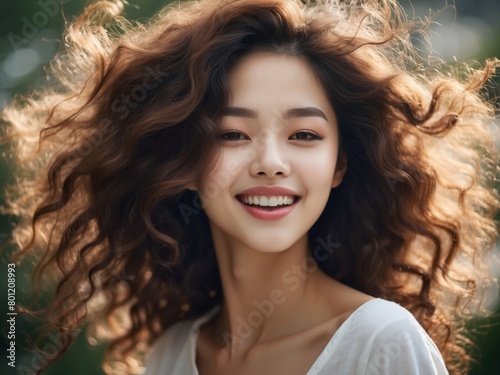 joy, forehead, face, nose, hair, smile, skin, lip, eyebrow, eyelash, bod, makeover, jaw, neck, happy, iris, dress, lipstick, ringlet, fawn, cool, liver, black hair, long hair, beauty, fashion model, plant, grass, brown hair, blond, fun, closeup, red hair, laugh, fur, portrait, tree, earring, model