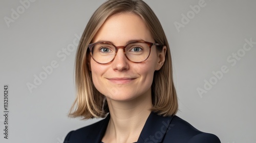woman, portrait, goggles, blazer, female, head shot, professional, business, corporate, serious, smiling, happy, confident, stylish, attractive, eyewear, spectacle, fashion, clothing, apparel, suit, jacket, brunette, blond, hair, eye, face, expression, neutral, background, grey, simple, clean, elegant, model, person, image, photo, picture, adult, young, pretty