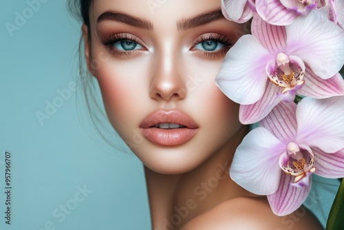 woman, beauty, flower, face, spa, skin, care, make-up, cosmetic, fashion, health, model, make-up, flower, eye, pink, skincare, body, lily, orchid, closeup, treatment, fresh, smile, hair