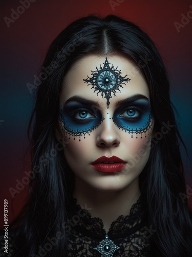 woman, beauty, fashion, hair, face, make-up, model, glamour, eye, make-up, art, lip, studio, coiffure, red, skin, black, cosmetic, closeup, eye, style, look, person, 1, mask