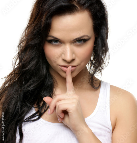 woman, lady, girl, female, beautiful, beauty, nice, attractive, young, healthy, sexy, emotional, caucasian, alone, 1, studio, indoor, brunette, white, isolated, fit, slim, thin, portrait, face, hair, well-being, silence, emotion, shoulder, black, cut-out, skin, hand, finger, look, eye
