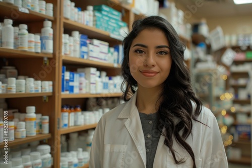 people, portrait, young, female, apothecary, pharmacy, health care, professional, hispanic, medicals, health, woman, chemist's shop, medication, service, occupation, work, provider, retail, expertise, authority, trustworthy, advice, prescription, care, clinic, medicine, white coat, clinical, customer service, job, dedicated, support, health care, consultation, pharmaceutical, store, wellness, drug, assistance, modern, lifestyle