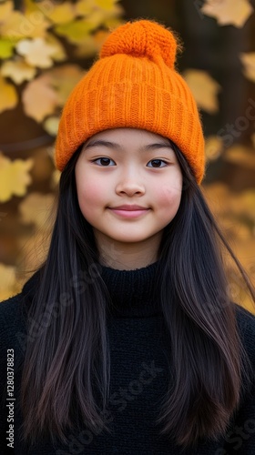 girl, portrait, autumn, leaf, orange, hat, sweater, black, hair, young, face, children, fashion, cute, model, photo, style, beauty, teenage, woman, pretty, clothing, accessory, expression, colours, fall, season, nature, background, image, picture, photo, smile, happy, look, eye, winter, headwear, park, children, people, yellow, childhood, 1, fun, outdoors, happiness, forest