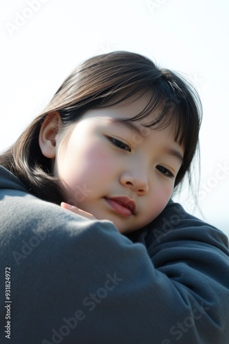 portrait, girl, young, children, thoughtful, expression, face, eye, lip, hair, dark, hoodie, grey, clothing, background, white, simple, clean, closeup, soft, beautiful, cute, innocence, youth, dreamy, candid, natural, adorable, innocent, sweet, gentle, peaceful, emotional, mood, human, people, person, female, childhood, teenage, fashion, style, lifestyle, beauty, model, posing, sitting, studio, shot