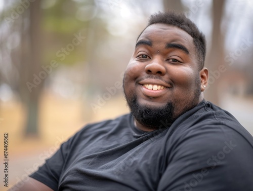 black, african american, portrait, young, chubby, fat, overweight, obesity, health, smiling, head, face, calm, self-confidence, friendly, open, smile, happiness, adult, person, cheerful, natural, attractive, people, outside, happy, casual attire, 1, guy, boy, young men, man, outdoors, city, background, street