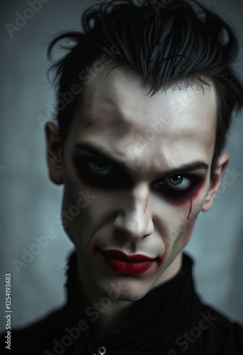 moody, fang, visionary, vampire, chilling, artistic, whimsical, eerie, atmospheric, profile, dark, male, hair, creepy, cinematic, realistic, boy, pale, photo, mystery, mythical, narrative, mysterious, scream, lifestyle, haunting, face, costume, bizarre, emotion, conceptual, blood, fantasy, emotional, dusk, portrait, supernatural, night, youthful, dramatic, intense, make-up, gothic, stylised, illustration, eye, expression, adventure, character