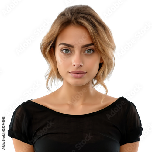 woman, beauty, hair, face, person, smiling, smile, people, teenage, model, 1, fashion, blond, teenage, looking, eye, studio, lady, expression, closeup, children, closeup, emotion, blond
