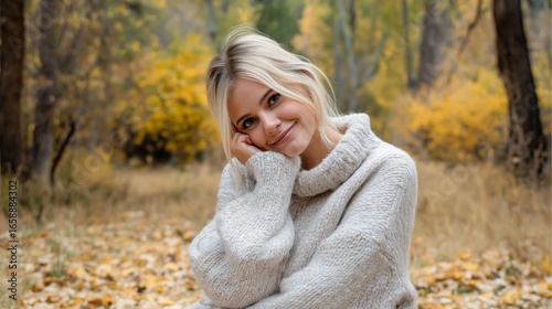 autumn, woman, portrait, forest, nature, smiling, cosy, sweater, foliage, leaf, sunshine, outdoors, serene, colours, young, happy, beauty, environment, seasonal, tree, personality, peaceful, lifestyle, candid, expression, warmth, relaxing, cheerful, fashion, grass, scenery, portraiture, bright, casual attire, tranquil, wood, girl, sitting, leisure, surrounding, earth, tone, joy, connection, happiness, landscape, peace, comfort, smile