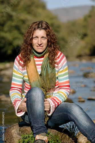 Portrait of a young woman in a river