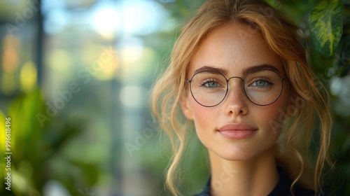 Portrait of a Young Woman with Glasses and a Gentle Smile
