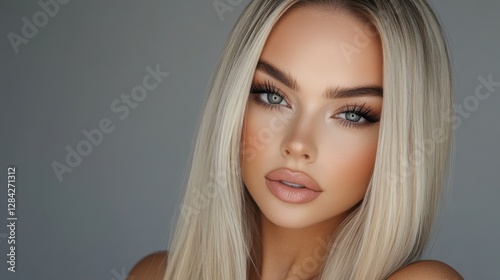 Portrait of a Young Woman with Long Blonde Hair and Striking Features
