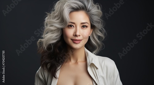 portrait of an attractive asian woman with half white half black hair