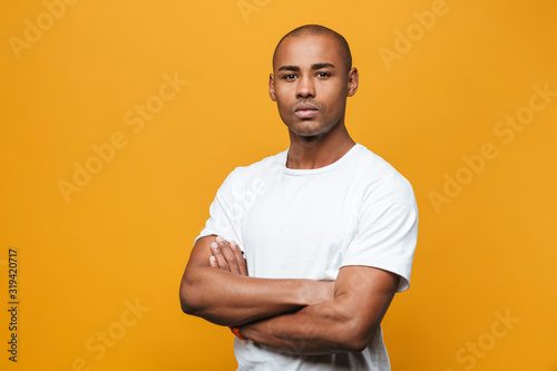 casual attire, male, isolated, man, standing, photogenic, portrait, african, american, adult, guy, 1, black, attractive, person, background, young, afro, confident, smart, modern, expression, people, executive, racked, cool, single, confidence, lifestyle, concentrated, arm, folded
