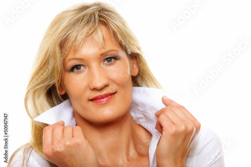 30s, adult, attractive, beautiful, business, businesswoman, copy space, female, girl, happiness, happy, human, isolated, joy, lady, mature, model, modern, person, pleasant, portrait, positive, pretty, satisfied, smile, studio, success, successful, white, smiling, natural, casual attire, caucasian, fashion, healthy, age, face, woman, make up, adorable, background, middle, dj