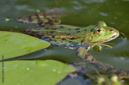 Portrait of an edible frog at the botanical garden in Kassel