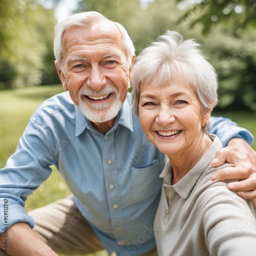 Portrait of an elderly couple together. Happy active senior couple having fun outdoors.