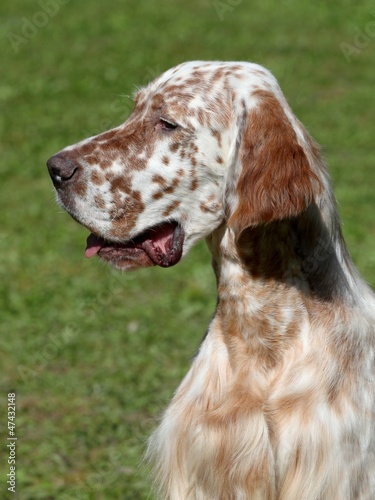 alert, animal, area, backyard, blue, clear, dog, english, evening, grass, green, lawn, laying, looking, neighbourhood, pet, relaxing, residential, setter, shadow, sky, spot, spring, suburb, summer, watching, meadow