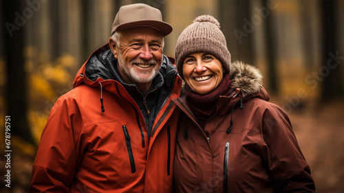 Portrait of an older couple in the park.Old couple walking outside in autumn