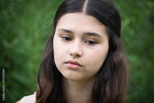 Portrait of beautiful girl looking to the down