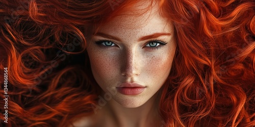 Portrait of beautiful redhead model with freckles, showcasing natural beauty and authenticity.