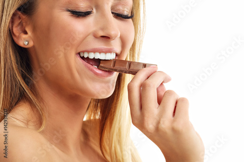 woman, chocolate, isolated, food, naked, face, copy space, temptation, diet, sensual, background, showing, fashion, spa, hand, person, girl, attractive, beautiful, beauty, female, portrait, pretty, white, adult, brunette, healthy, young, caucasian, 1, bar, cute, eat, health, studio