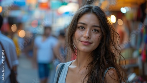 crowd, city, street, portrait, woman, girl, beautiful, young, urban, lifestyle, person, people, female, looking, pretty, modern, adult, casual attire, travel, walking, outdoors, happy, face, lady, fashion, shopping, traffic, caucasian, smile, life, attractive, pedestrian, downtown, standing, camera, smiling, model, japanese, style, asian, coat, cheerful, background, night, road, walk, summer, commuting