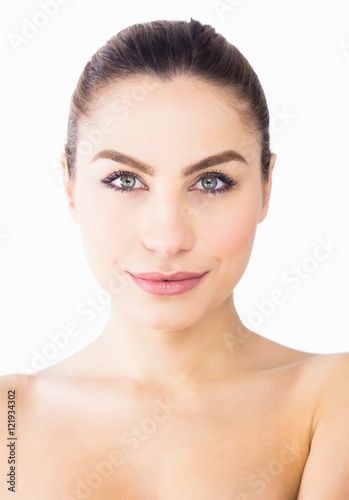 Portrait of beautiful woman posing against white background