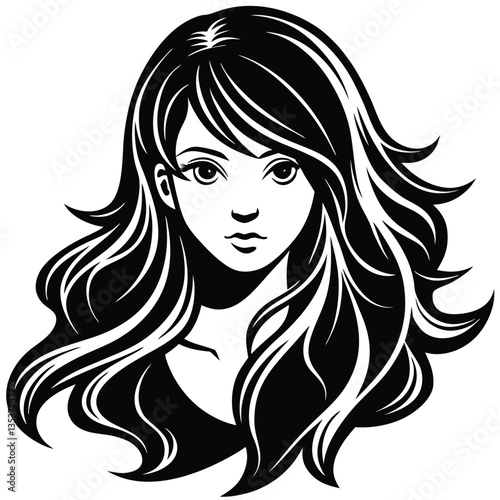 portrait of beautiful woman with long hair. silhouette vector graphic. isolated white background