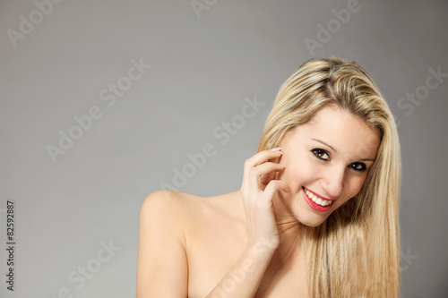 female, beautiful, portrait, girl, model, young, face, beauty, pretty, caucasian, woman, hair, person, attractive, fashion, blond, make-up, closeup, sexy, 1, glamour, adult, fresh, skin, happy, background, isolated, look, studio, lip, coiffure, smile, lifestyle, stylish, skincare, vogue, eye, natural, long, close, looking, trendy, art, posing, hand, grey, arm, shoulder, expression